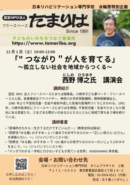 【お知らせ】11/1 日リハ 文化祭特別講演会