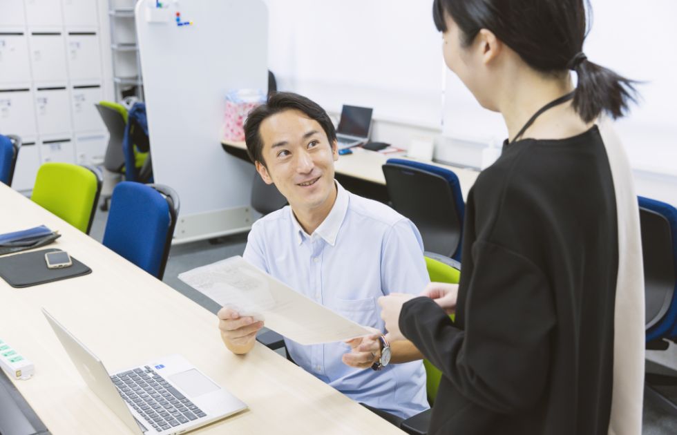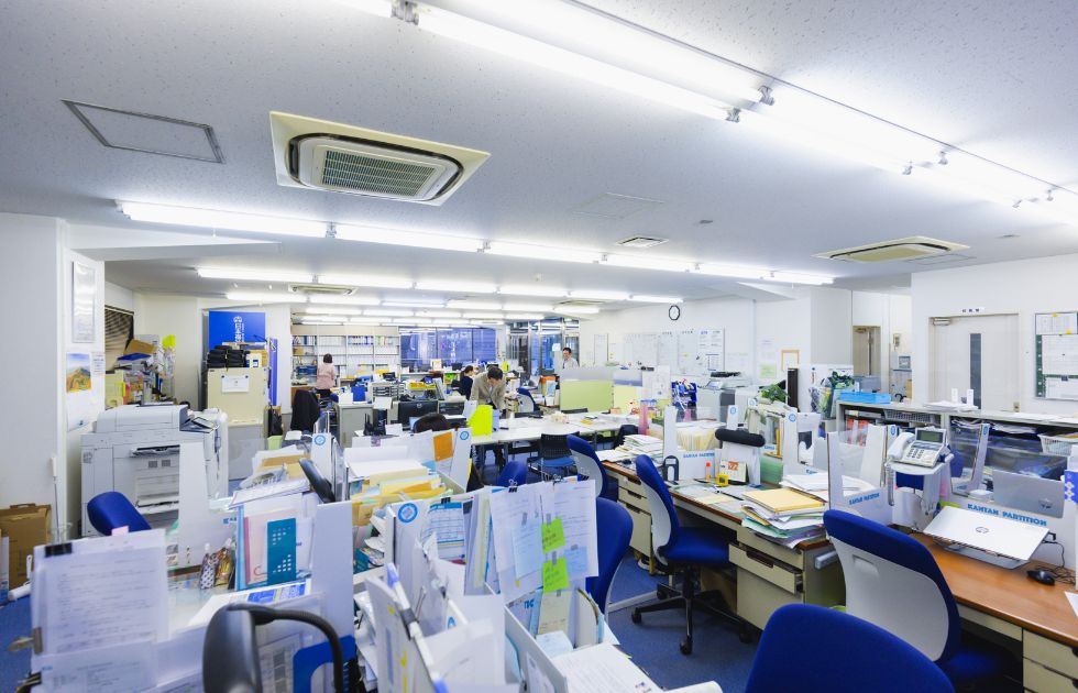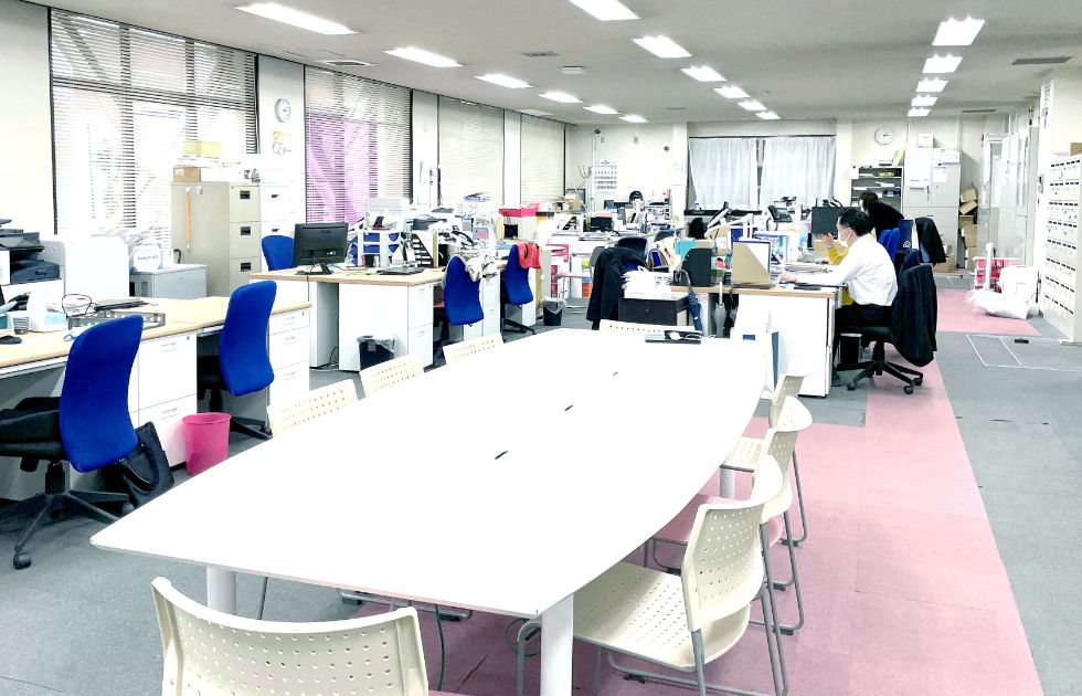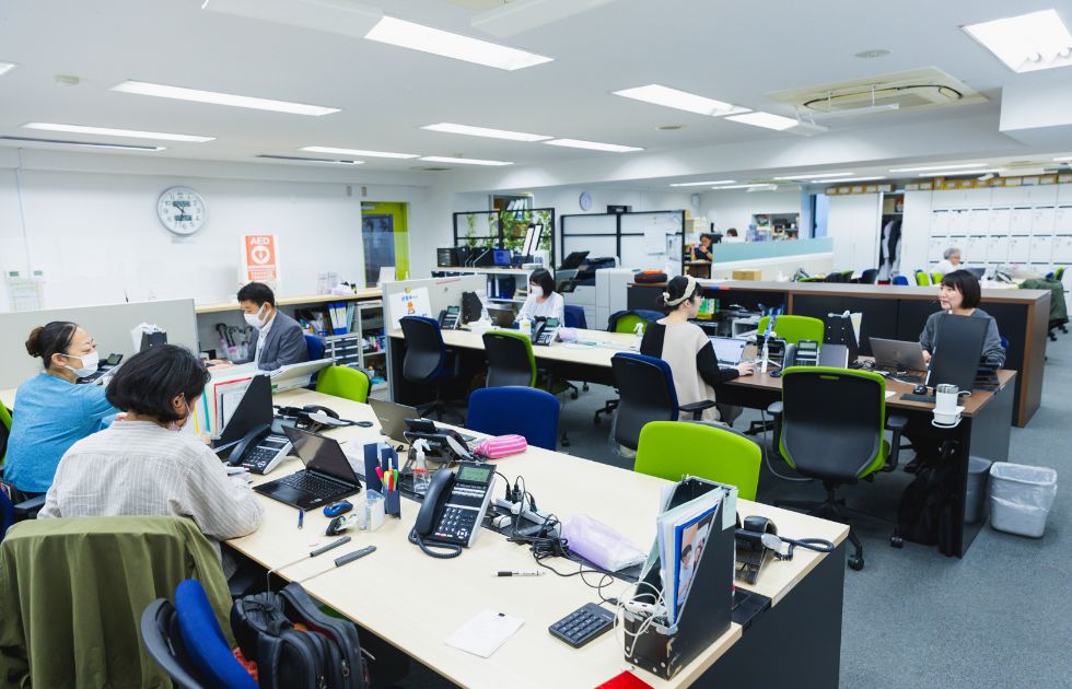 フリーアドレス制を取り入れたオフィスなど、敬心学園は働きやすさと社員同士の交流を大切に業務を行っています。